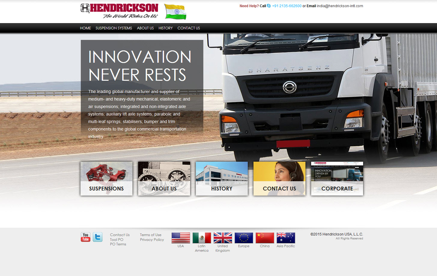 In addition the India website, india.hendrickson-intl.com, promotes relevant suspension systems that are specific to our customers in this market.
