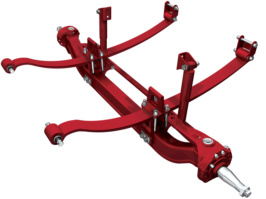 Compatible with drum or disc brakes, SOFTEK® NXT incorporates a two-piece knuckle assembly featuring premium kingpin bushings and seals for improved bushing life. The two-piece configuration also significantly reduces the maintenance time required to service kingpin bushings. The system realizes further maintenance savings through the use of rubber spring eye bushings which require no lubrication.